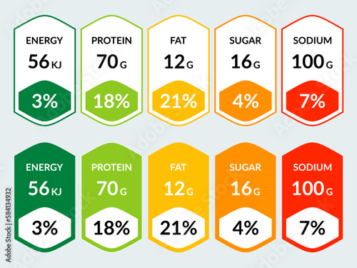 Vector set label nutrition facts information and ingredient information isolated on transparent background.