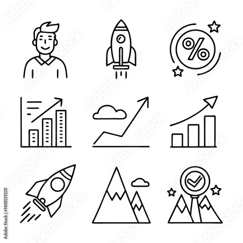 Vector set of black business icons and people silhouettes