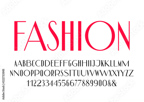 Vector set of condensed and extended sans serif letters with contrast and numbers.