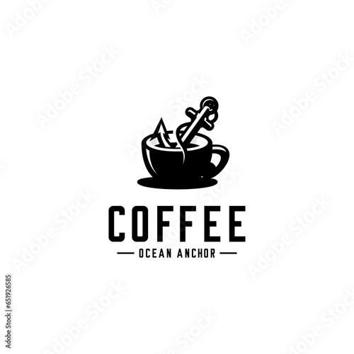 vector ship anchor in a cup of coffee, coffee cafe logo