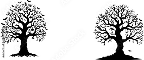 Vector silhouette of a tree in winter with dry branches and visible roots