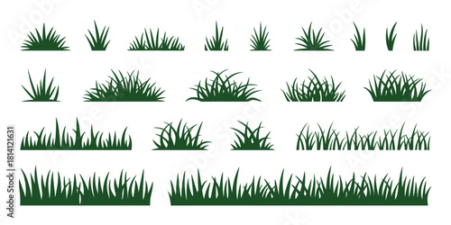 Vector Silhouettes of Green Grass Clumps Stylized Blade Variations for Landscape and Nature Design. vector illustration
