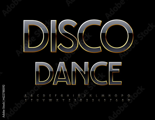 Vector stylish icon with text Disco Dance. Black Slim Font. Modern Alphabet Letters and Numbers set