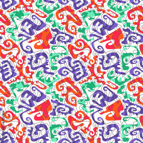 Vector surreal colorful seamless srtwork with wave hand drawn patterns for print fabric, textile, apparel clothing.