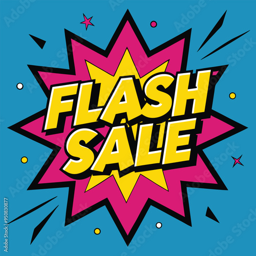 Vector Template with 'Flash Sale!' in Speech Bubbles, Thunder Sign, Bold Colors