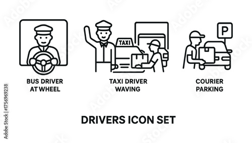 Vector Transportation driver icons: bus, taxi, courier illustrations