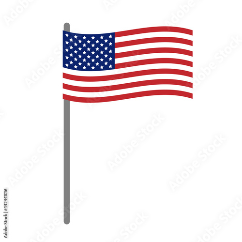 Vector waving flat American USA flag isolated on white background