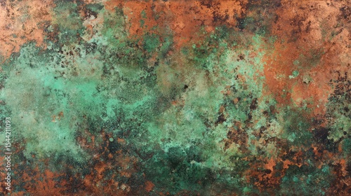 Verde Copper Bloom Abstract Patina Texture with Oxidized Metal Background.