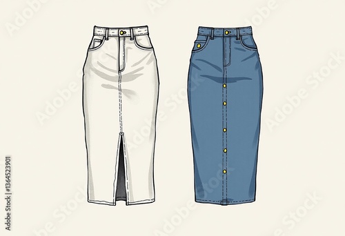 Versatile Style: Women's Mid-High Rise Tailored Denim Pencil Skirt with Slit & Pockets - A Fashionable Blend of Classic & Modern Design, Perfect for Any Occasion