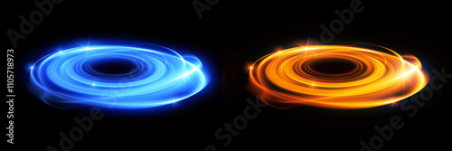 Versus round blue and red glow rays night scene. Light effect podium. .Beam stage. Magic fantasy portal. Futuristic teleport. Vivid curls. Versus battle