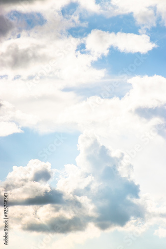 Vertical background featuring clouds with light beams breaking through, offering a peaceful and contemplative space for text, representing hope and possibilities.
