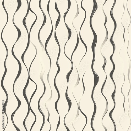 Vertical wavy black stripes on white background, seamless pattern