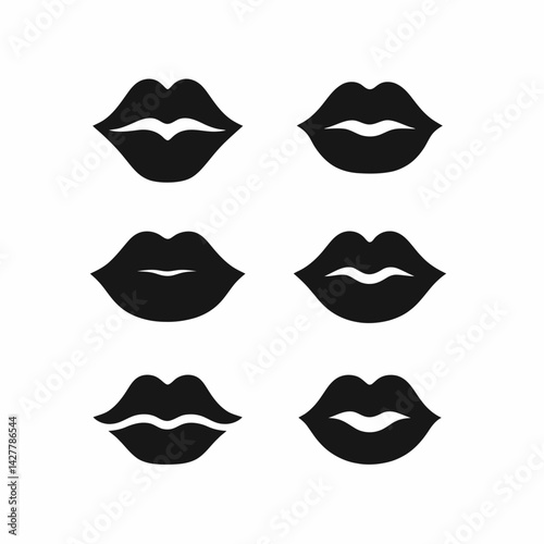 very simple flat and single minimalist Lips Silhouettes in black on a white background