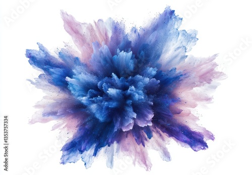 Vibrant Abstract Explosion of Blue and Pink Watercolor Paint with Splashes and Swirls on a White Background for Creative Design Applications