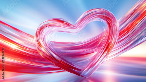 Vibrant Abstract Heart-Shaped Design with Intertwining Red and Pink Lines