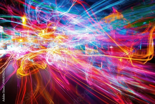 Vibrant abstract light trails create a dynamic. colorful background. suggesting movement and energy. suitable for creative projects or digital art themes