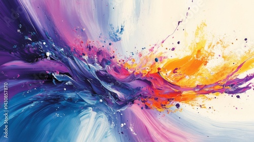 Vibrant Abstract Painting with Purple Blue Orange and Yellow Splashes