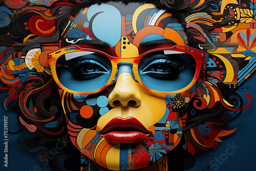 Vibrant abstract portrait with bold colors and patterns