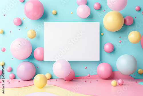 Vibrant Abstract Sphere Template for Product Presentation on Pastel Background with Blank White Paper Note