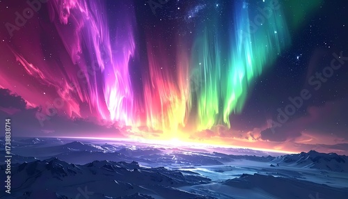 Vibrant Aurora Borealis over a Winter Landscape.