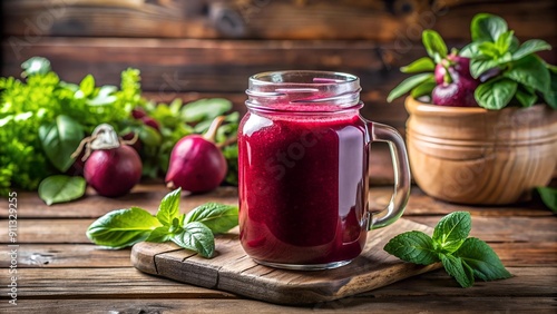 Vibrant Beetroot Smoothie in a Glass Jar with Fresh Herbs Generative AI