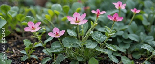 Vibrant blooming purslane flowers amidst lush green foliage in a garden setting showcasing their delicate petals and natural beauty.