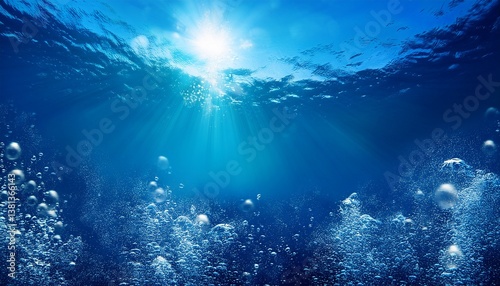 vibrant blue background with glowing bubbles and shining water reflections creates a magical underwater ambiance