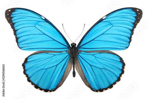 Vibrant blue butterfly resting with outstretched wings in natural display for nature enthusiasts and educators, cut out