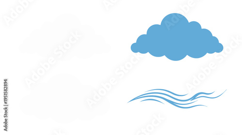 Vibrant blue cloud and flowing wind lines vector illustration with subtle white cloud shapes.