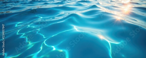 Vibrant blue, dynamic ripples, sunlit surface, background, sparkle
