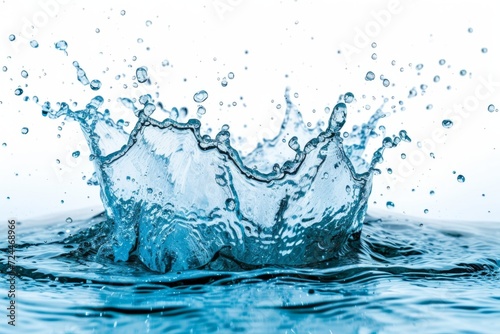 Vibrant Blue Water Splashes Energize Pristine White Backdrop, Captivating The Eye