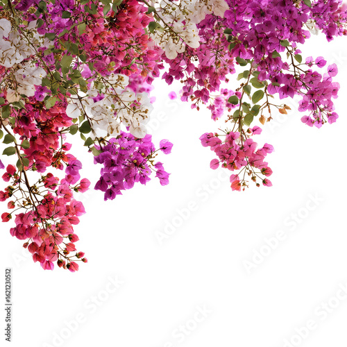 Vibrant bougainvillea blossoms cascade