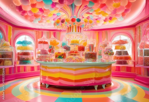 vibrant candy displays featuring gradient colors textures colorful setting full whimsical shapes eye catching arrangements, candyland, confectionery