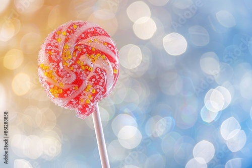 Vibrant Candy Lollipop on Sparkling Bokeh Background - Sweet Treat Concept
