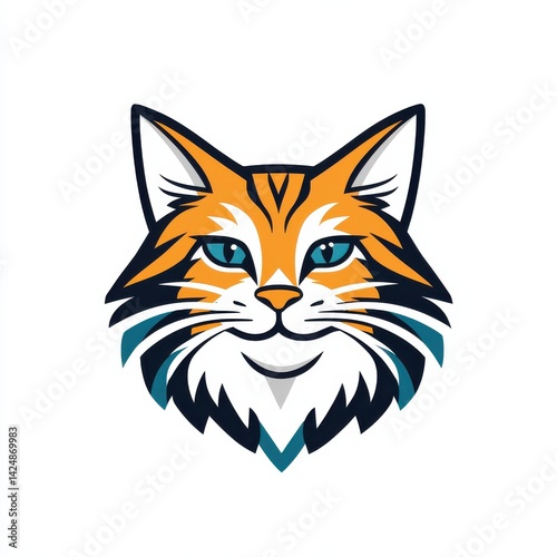 Vibrant cartoon cat face illustration with blue eyes and orange fur