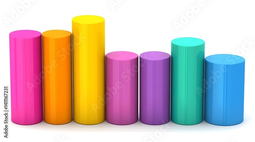 Vibrant chart cylinders showing progress, growth or performance metrics