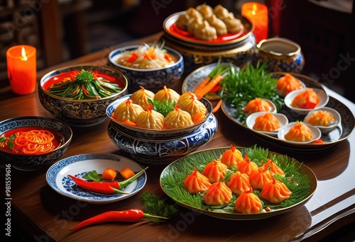 vibrant chinese dishes displayed striking presentations colorful ingredients artistic arrangements, appetizing, aroma, bowl, chef, contrast, creativity