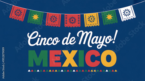 Vibrant cinco de mayo celebration banner with colorful decorations and mexico text