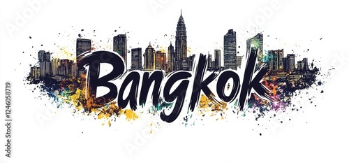 Vibrant cityscape representation of Bangkok with artistic elements showcasing its skyline and urban life