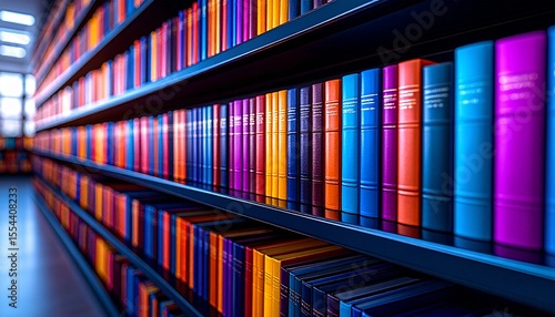 Vibrant Collection of Books on Library Shelves A Colorful Display of Knowledge
