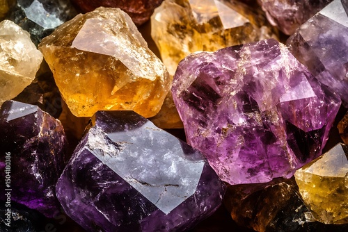 Vibrant Collection of Raw Crystals Showcasing Amethyst and Quartz with Intricate Textures and Natural Hues Unveiling the Wonders of Geology