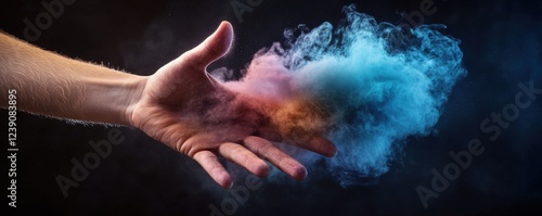 Vibrant Color Powder Clouds Emanating from a Hand in Motion