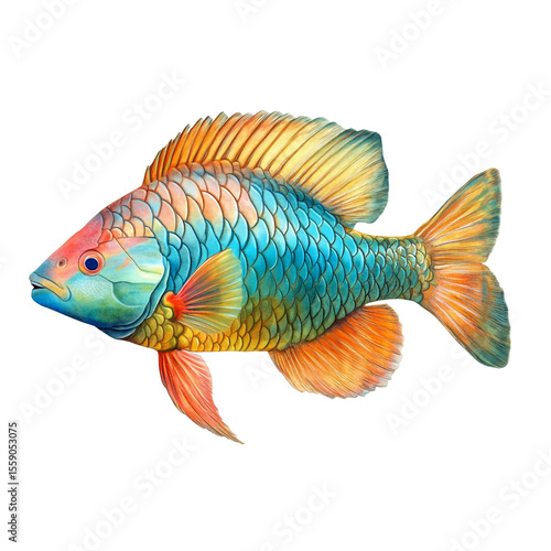 Vibrant colorful fish swimming against black background detailed scales fins and body