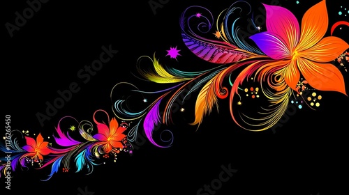 Vibrant Colorful Flowers and Swirling Floral Design