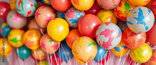 Vibrant, colorful painted balloons on a blurred background, glossy, balloons