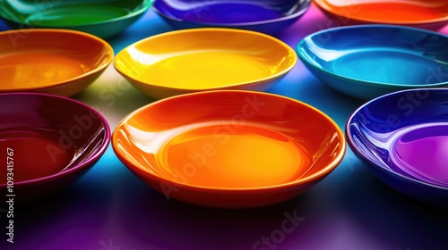 Vibrant Colorful Plates Arranged in Rows Emphasizing Portion Control for Intermittent Fasting and Healthy Low Carb Ketogenic Diet Options