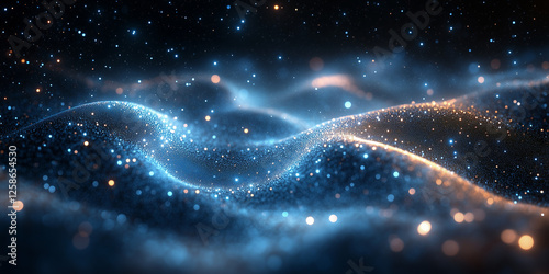 Vibrant cosmic landscape showcases swirling particles and sparkling lights against a dark background