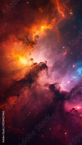 Vibrant cosmic nebula with glowing stars and swirling gas clouds