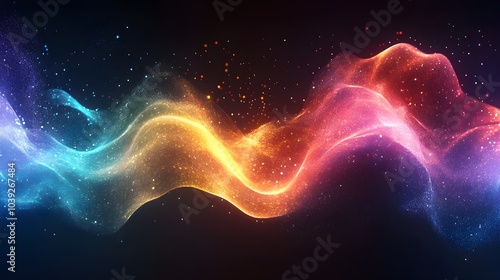 Vibrant Cosmic Sound Wave Visualization Ethereal Swirling Energy Explosion in Multicolored Galactic Landscape