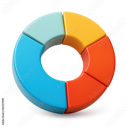 Vibrant data visualization: A colorful 3D pie chart, representing data segmentation, offers a clear and engaging view of various proportions and ratios.